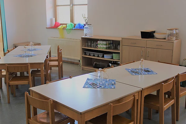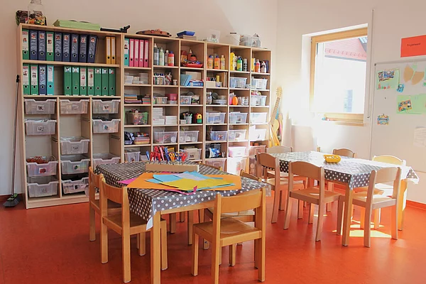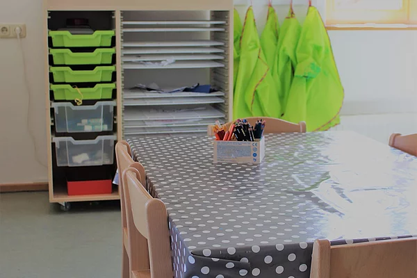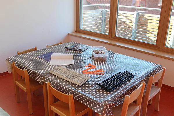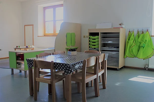seit September 2024 haben wir eine Gruppe für 2-3 -jährige Kinder im Haupthaus: die "Sonnenkäfergruppe". mit 15 Kindern. Außerdem zwei Kindergartengruppen im Haupthaus: die rote Gruppe und die orange Gruppe mit je 25 Kindern. Im Nebengebäude ist eine Kindergartengruppe mit 25 Kindern untergebracht: die gelbe Gruppe.