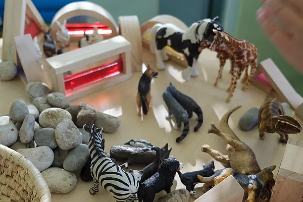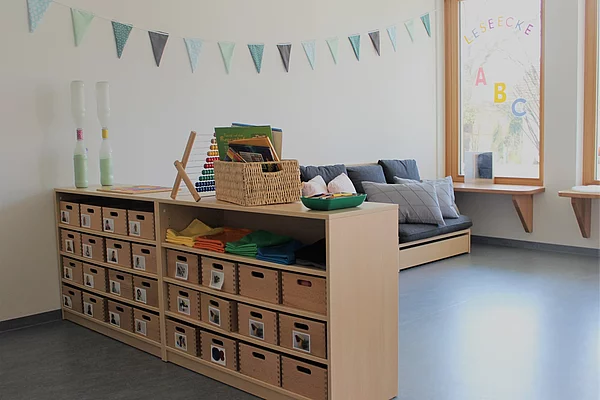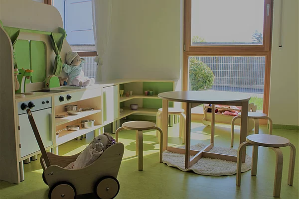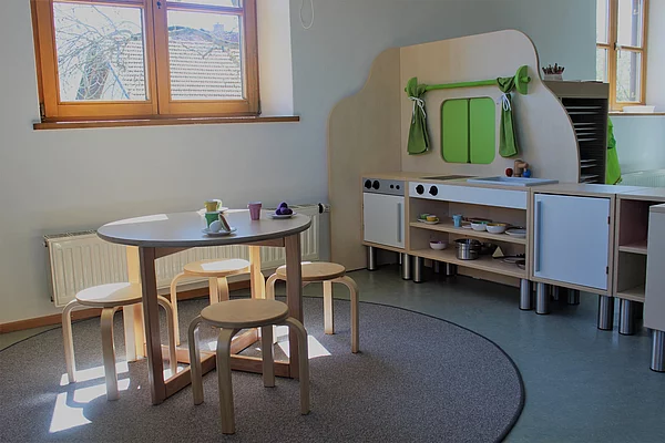 Alle Räume bieten Möglichkeiten zum Bauen, für Experimente, für Rollenspiel, für Atelierangebote und zur Entspannung sowie für Tischspiele. Sie werden immer wieder situationsgerecht umgestaltet.